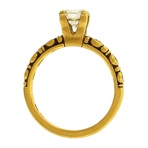 Alex Sepkus’ rings are so appealing for many reasons but the ‘Circle’ engagment ring here shows a few: the delicacy of the design, the way Sepkus references traditional engagement rings, yet makes his unique and modern. The ‘Circle’ in 18K yellow gold is set with 0.15 cts side diamonds and designed for a three-quarter carat diamond.