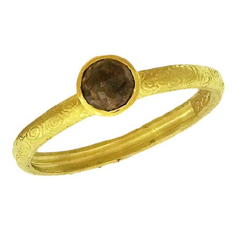 Alishan’s natural rose-cut diamond stacking rings are great to wear stacked or solo, this one particularly so, 18K yellow gold with engraved finish, set with a 0.45 ct natural diamond. The ring is 3/16″ in diameter.