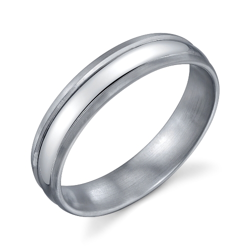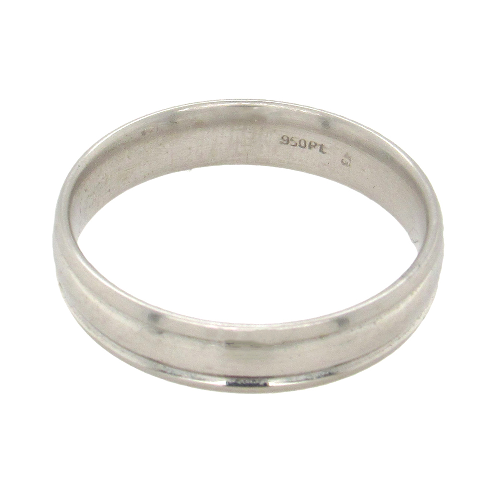 Platinum is luxurious and Christian Bauer creates traditional platinum bands for men, like this 5mm version with a slightly bombé curved center with grooved sides, size 10.25, luxurious but comfortable and easy to wear.