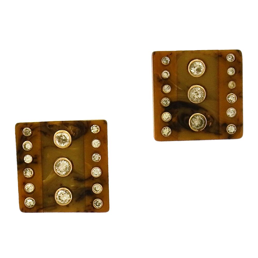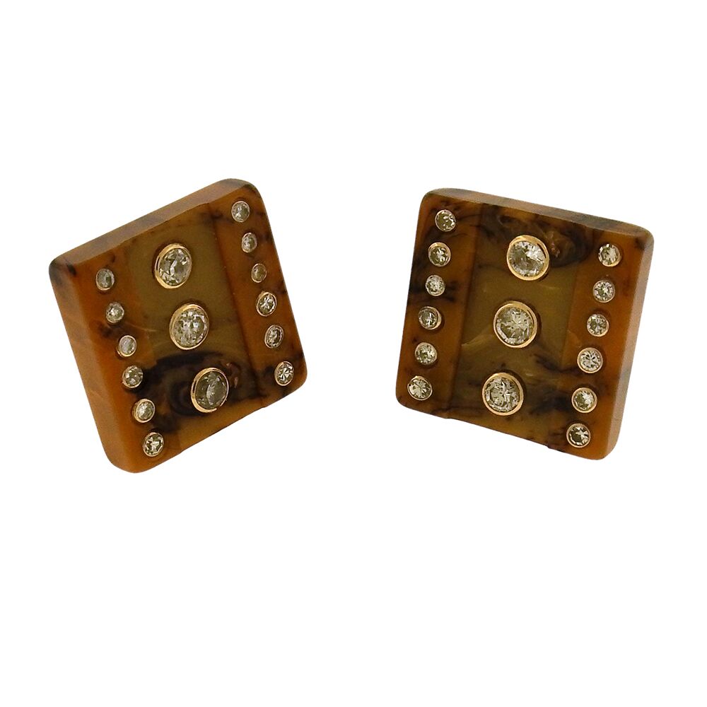 Circa 1970’s Diamond and Resin Clip-On Earrings