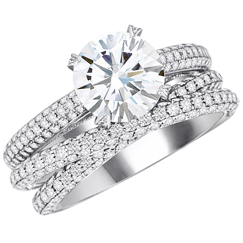We love Simon G’s very modern criss-cross micropavé double diamond band, set with 1.01 carats of diamonds, and a great ring to wear alone or as a companion to SimonG’s engagement ring shows, sold separately.