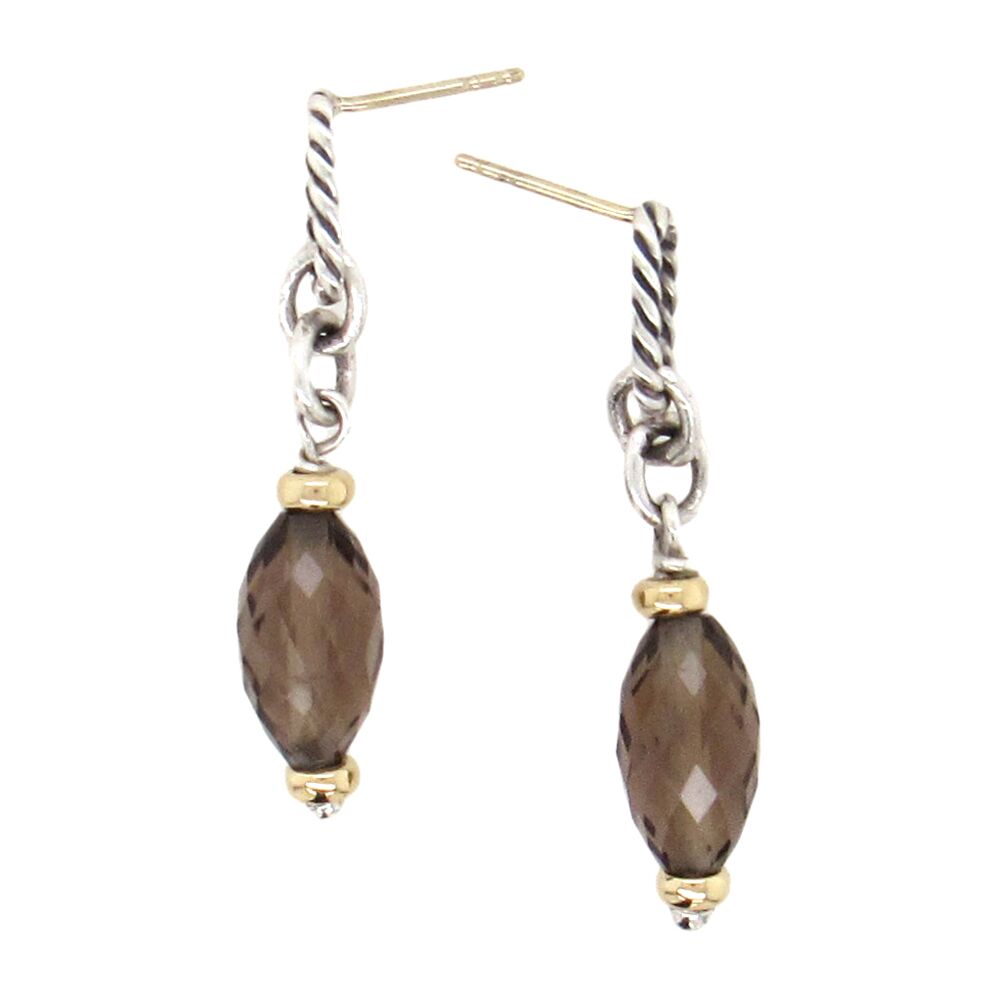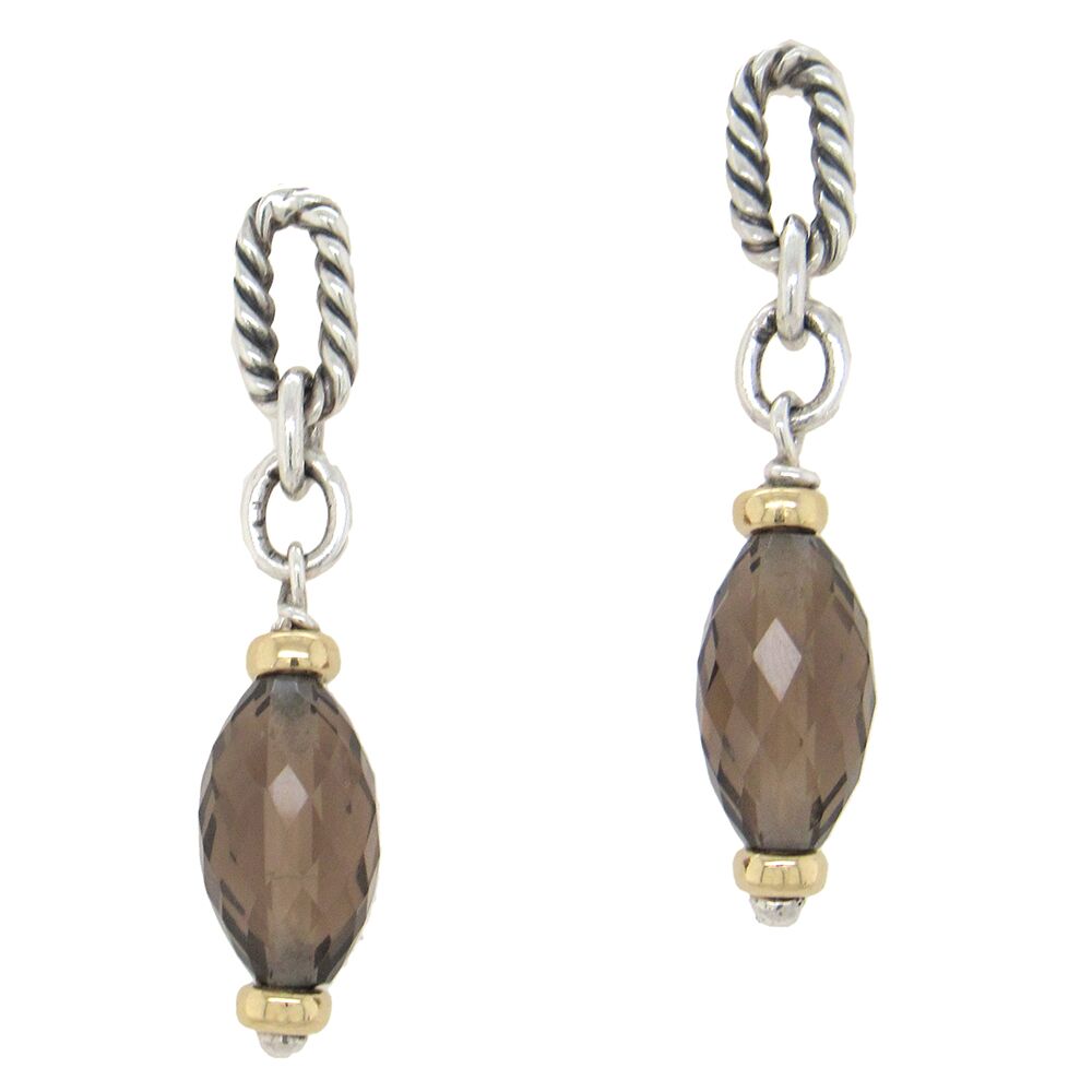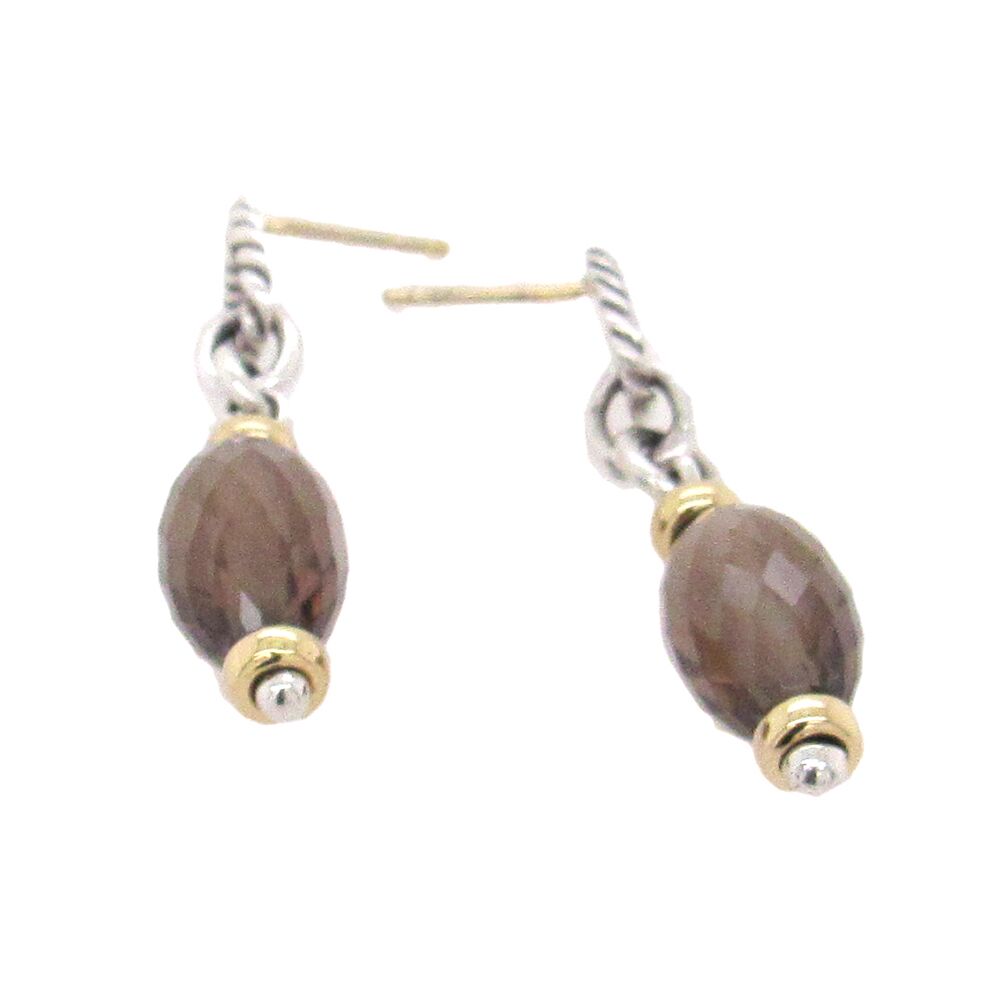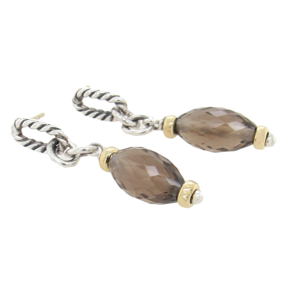 Sterling silver, 14K gold and smoky topaz briolette bead Figaro drop earring, by David Yurman from a private estate, measures 1/4″ x 1-1/2″.