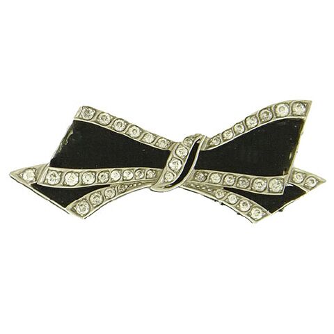 Antique Edwardian platinum and diamond bow-tie ribbon pin set with old European cut diamonds, the brooch measuring 2″ x 3/4″.