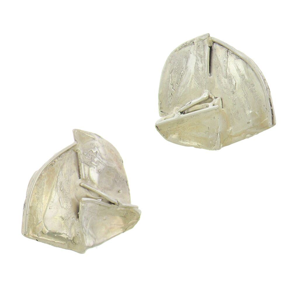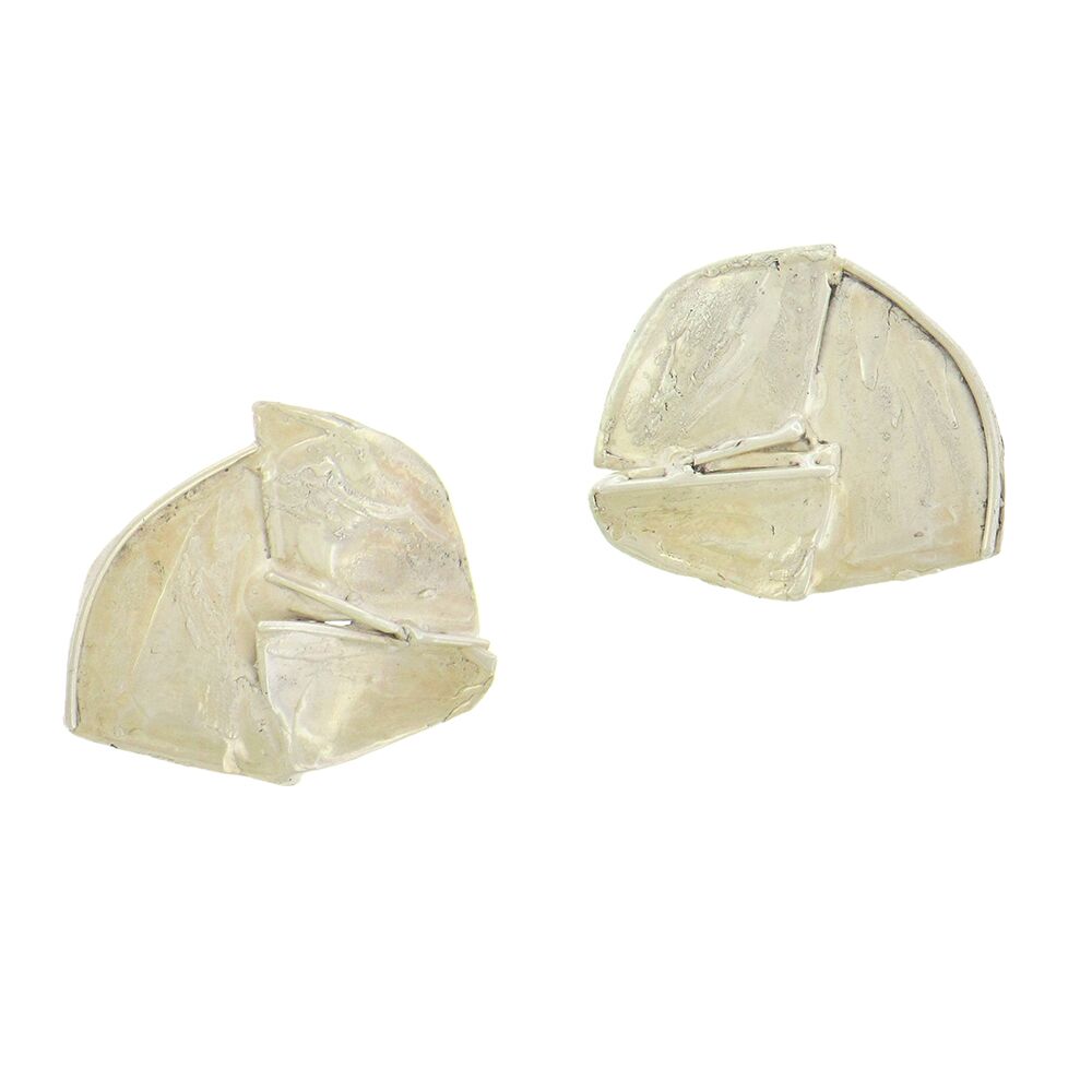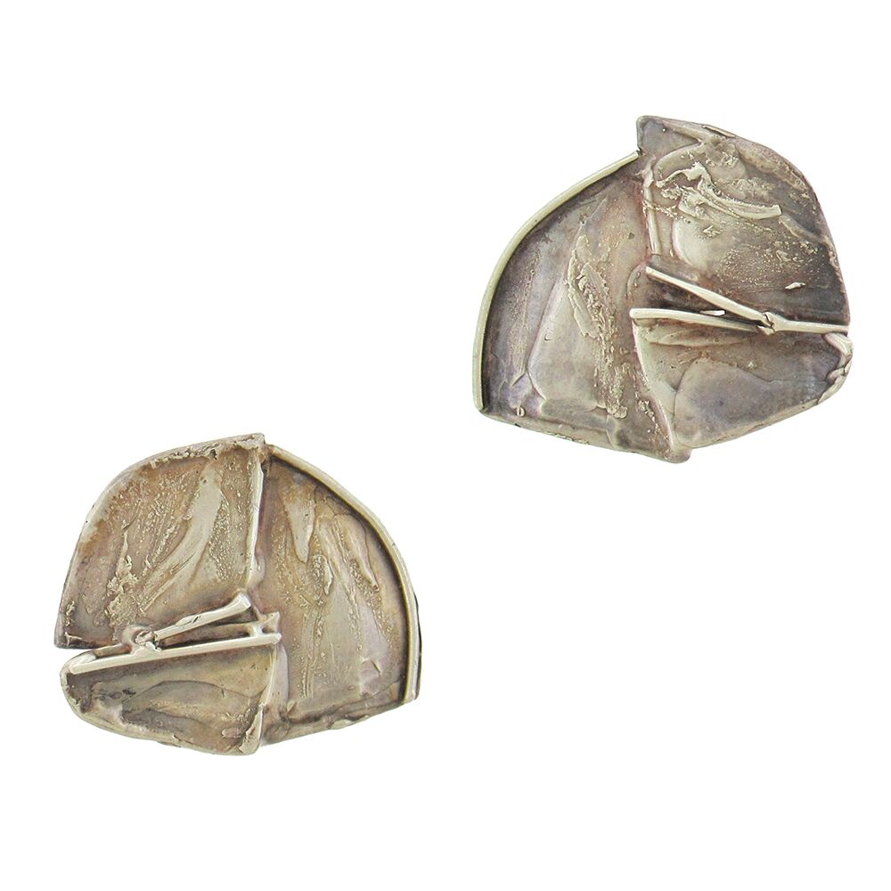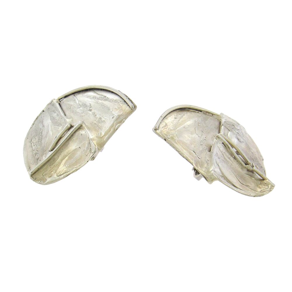 Sterling silver textured ear clips by Glenda Arentzen, circa 2000, from a private estate, measures 1-1/8″ x 1″, in a very wearable half-dome shape.