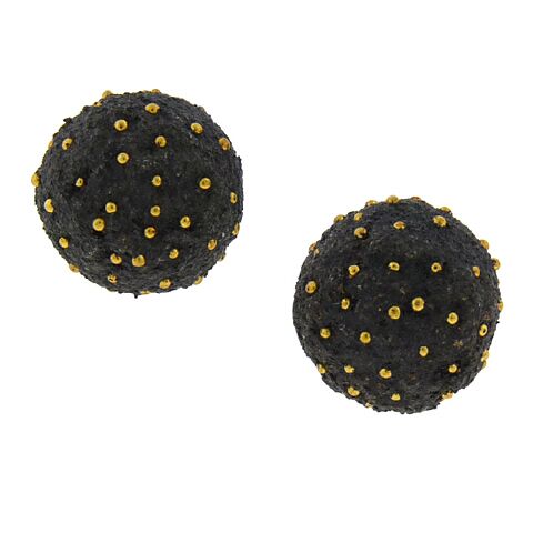 Oxidized sterling silver and 24K granule stud earrings, 9mm, with sterling silver posts, from Arata Fuchi.