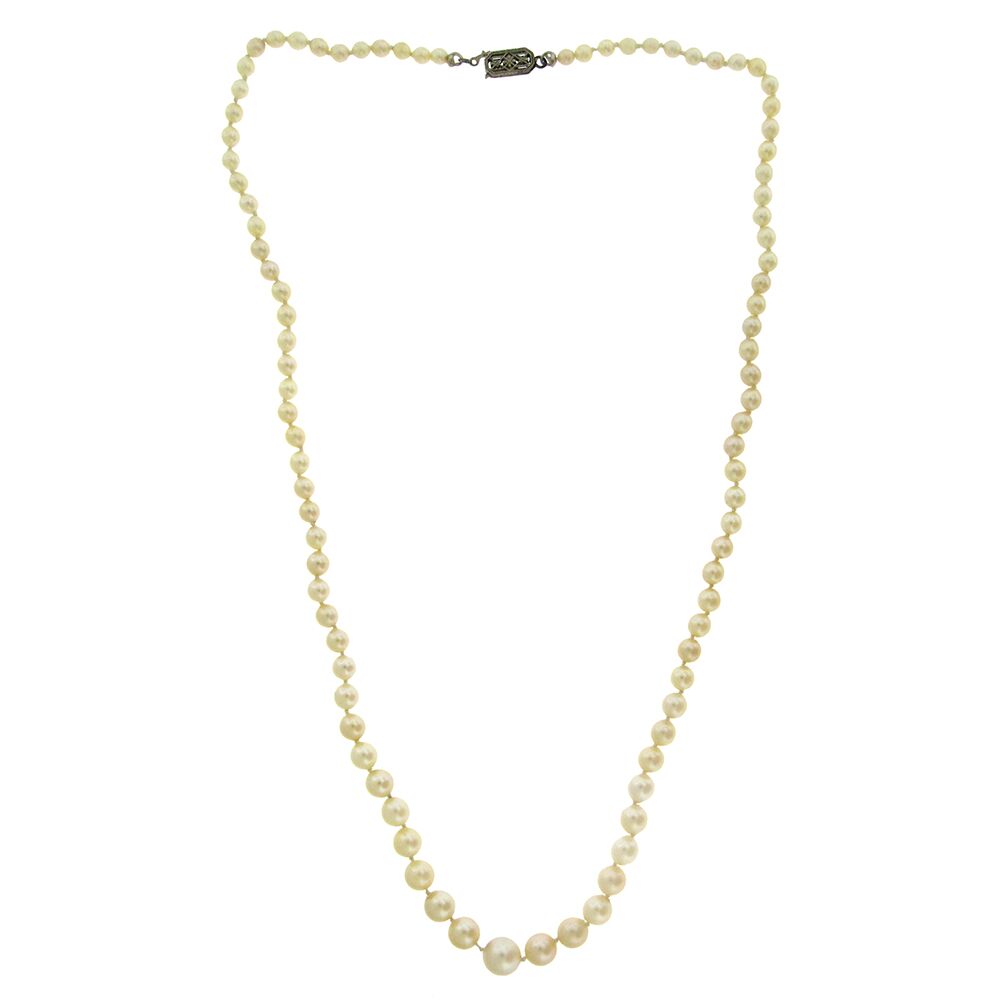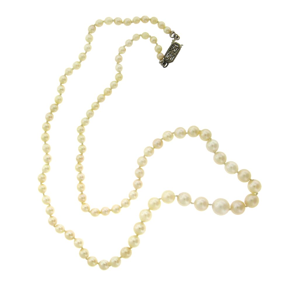 Graduated cultured pearl necklace, 20″ long, ranging from 3mm to 7.5mm.