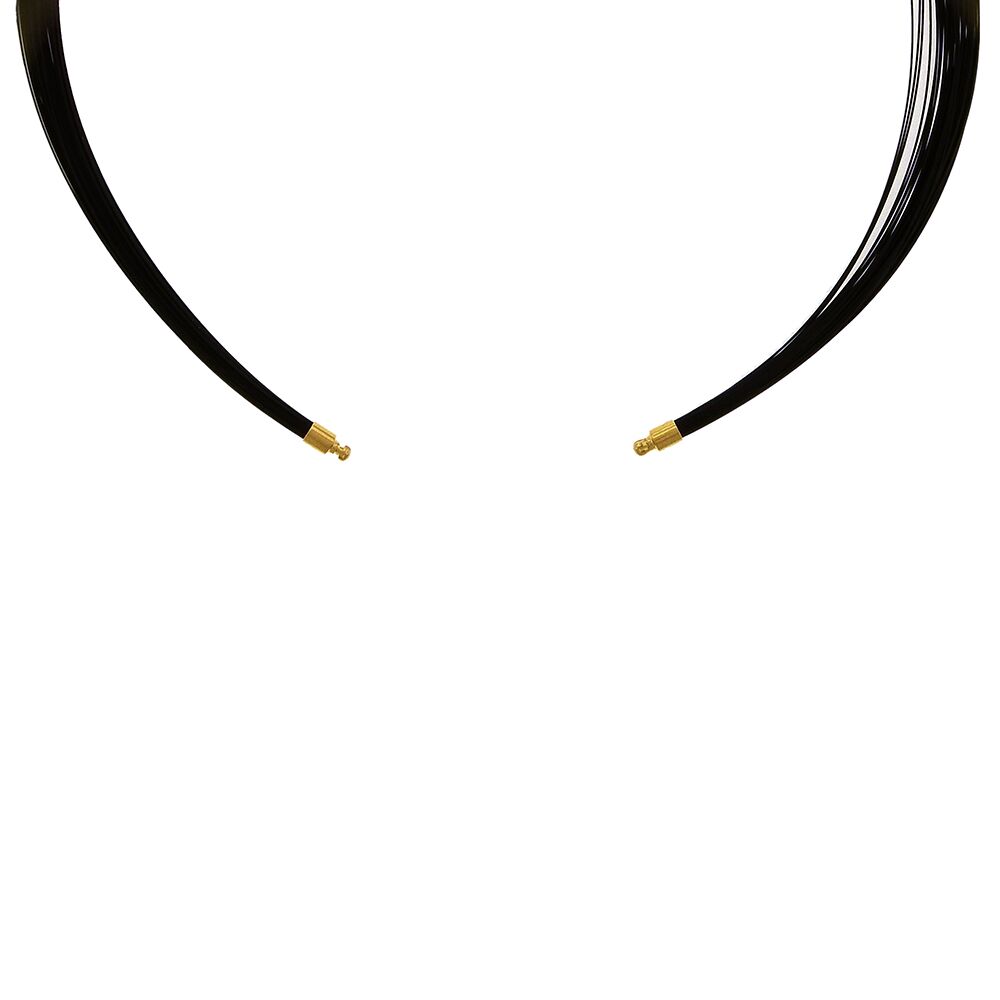 Jorg Heinz puts together multi-strandfine blackened sttel with 18K yellow gold tips to wear with any bead clasp, shown here with Heinz’s 18K rose gold torque bead, a perfect necklace. The coil necklace is 16″ long, the rose gold bead, sold separately, is 11mm diameter, 3/4″ long.