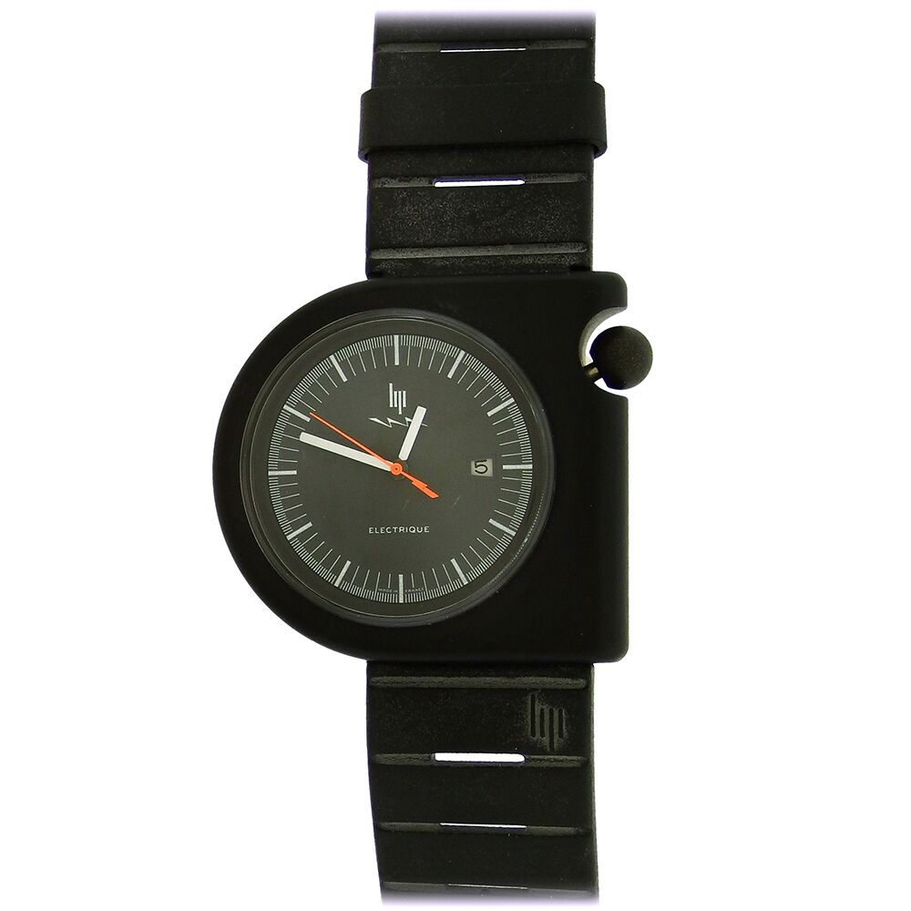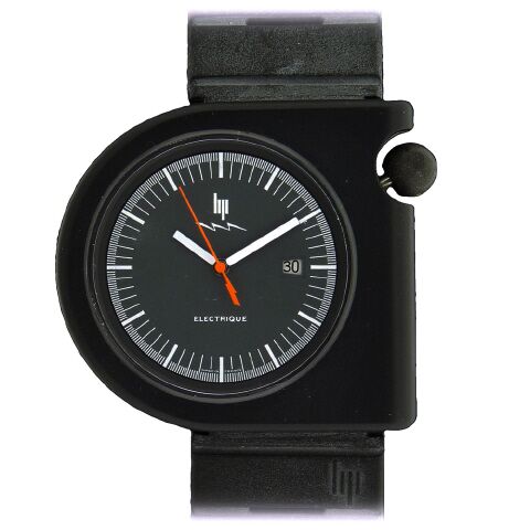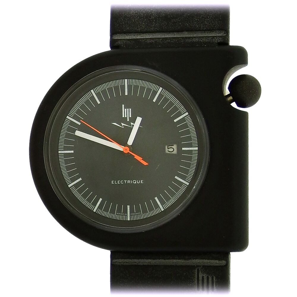 the original vintage 1974 “Mach 2000” Moon Electrique, with French electro-mechanical movement, original signed LIP rubber strap., in like-new condition. See Pieter Doensen’s “Watch – History of the Modern Wristwatch”.