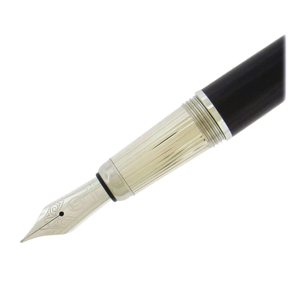 Limited edition Louis Cartier solid ebony fountain pen, made in France circa 1990’s, is number 1670 of an edition of 1847. The 13mm pen is ebony with outer platinum finish has an 18K white gold nib, original box, original edition certificate and booklet with full instructions titled ‘Stylo Louis Cartier’. From a private estate.