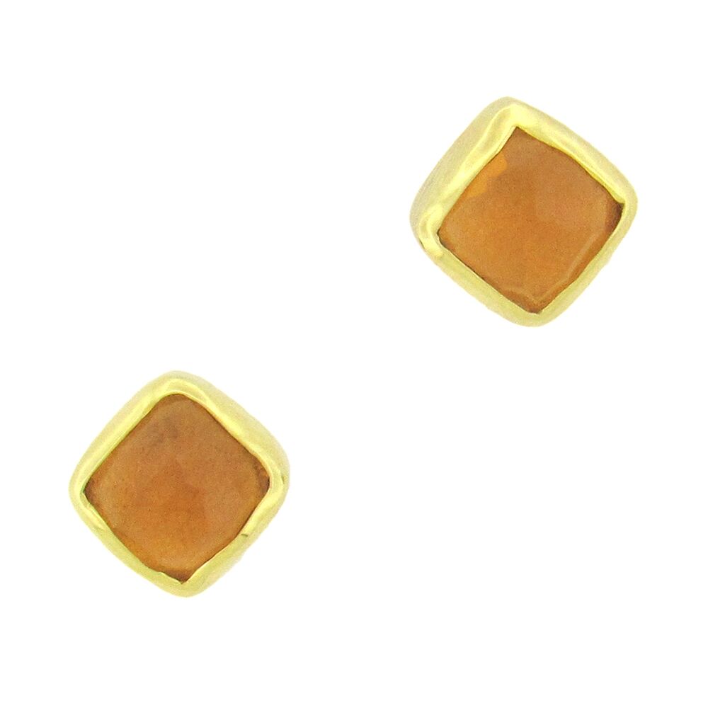 Square rose-cut citrines, 3.50 cts tw, from Margoni Studio are set in 18K yellow gold with sterling backs and posts. Earrings measure 1/4″ square.