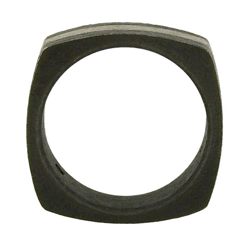Alishan contrasts oxidized sterling silver and an inner stripe of palladium — lighter and tougher than platinum — set with a 0.04 ct black diamond at one edge in his squared 7mm men’s ring, shown in size 10.