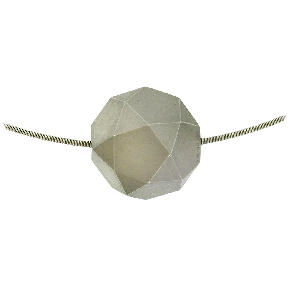 Niessing’s architectonic design is famous throughout the world and we are proud to represent their design collection in New York. Here, the three-dimensional ‘Crystallite’ pendant in platinum, 16mm in diameter, with the remarkable craftsmanship for which Niessing is famous, with each edge polished and each facet matte. Platinum coil sold separately NCK03197.