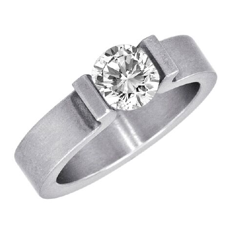 Niessing is famous for their tension-set diamond engagement rings, designed by Walter Wittek in 1979. They are a marvel of technology, in which the diamond is held without prongs or bezels, but by the pressure of the mounting on either side of the diamond.