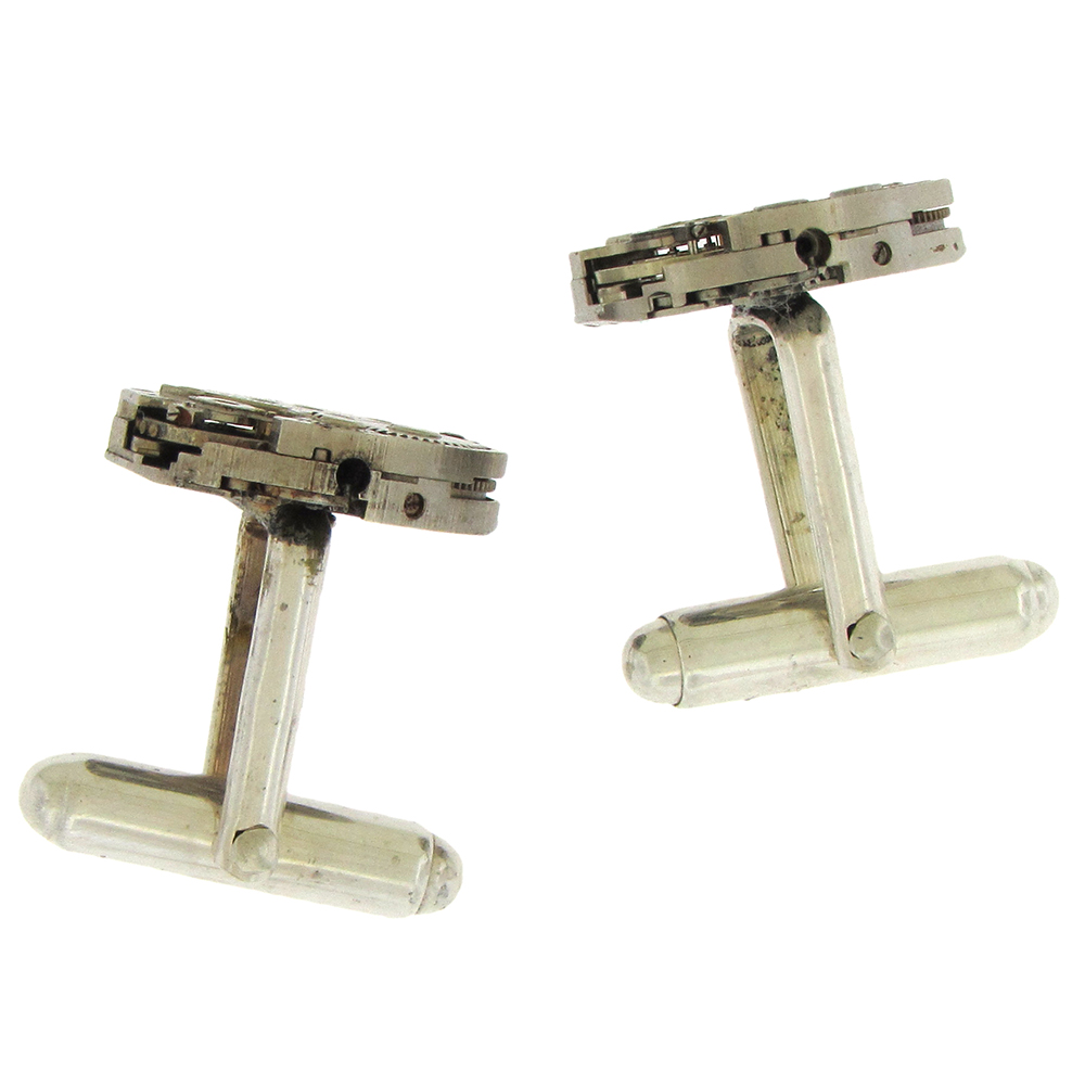 For that watch aficionado, sterling silver cufflinks with actual watch movements — these are 17J Swiss movements — measuring 1/2″ x 5/8″.