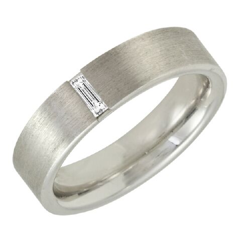 Choose the best: Christian Bauer gents’ bands are classic and comfortable, here an understated 6mm band set at top with a single 0.16 carat diamond baguette, complemented by matte finish, polished edges and a comfort-fit design, size 10.