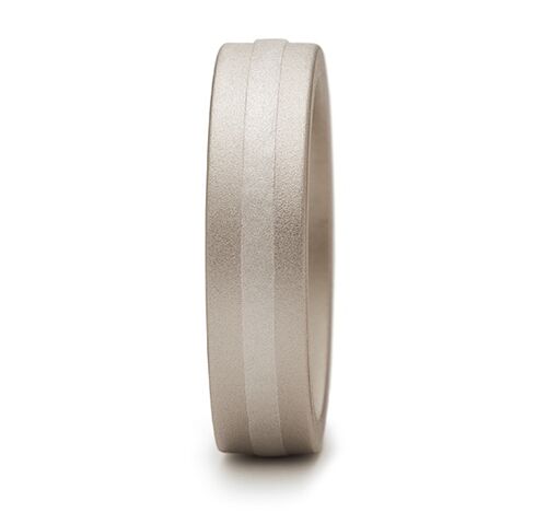 Niessing’s handsome ‘Fusion’ ring, 5mm, combines 18K grey gold and center stripe of platinum, a great look for men. Niessing’s high level of manufacture means the workmanship is as strong as the design.