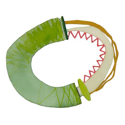 Enamel artist Rebekah Laskin is best known for her kiln-fired painterly brooches, circa 1990’s, but here she is creating in new media, 3D printed bracelets with her hand-painted highly developed color palette. Wear one, or more, or hang as mobiles.