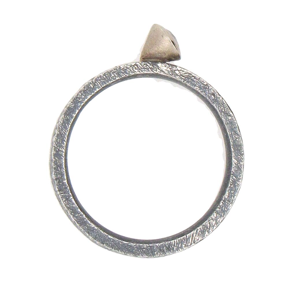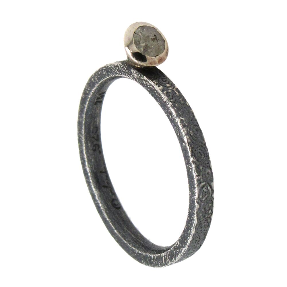 Alishan’s natural diamond rings, to wear singly or in a group, can be added to your collection one at a time. He fabricates each one in his studio by hand, each one-of-a-kind, set with natural rose-cut diamonds. Here, an oxidized sterling band is set at top with a 0.31 ct rose-cut natural diamond in a palladium ‘martini’ mounting.