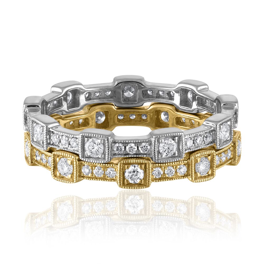 SimonG’s beaded eternity bands stack together or wear solo, here in 18K white gold is set all around with 0.33 cts tw diamonds, measures 3mm wide, also available in 18K yellow and rose golds, or platinum.