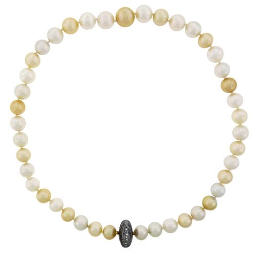 Our 19″ strand of 10mm to 13.2mm South Sea pearls combines beautifully lustrous silver-white pearls with the blonde tones of Australian South Sea golden pearls, rare and luminous. The strand clasps with its own matching pearl, not shown, and can also be worn as shown with a designer clasp at the front, clasp sold separately.