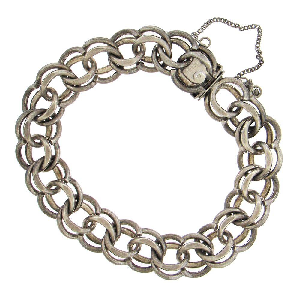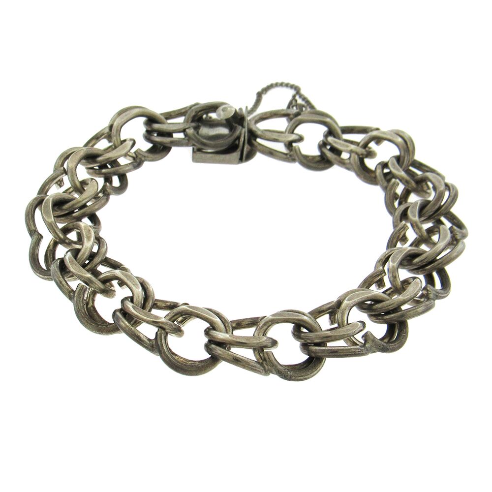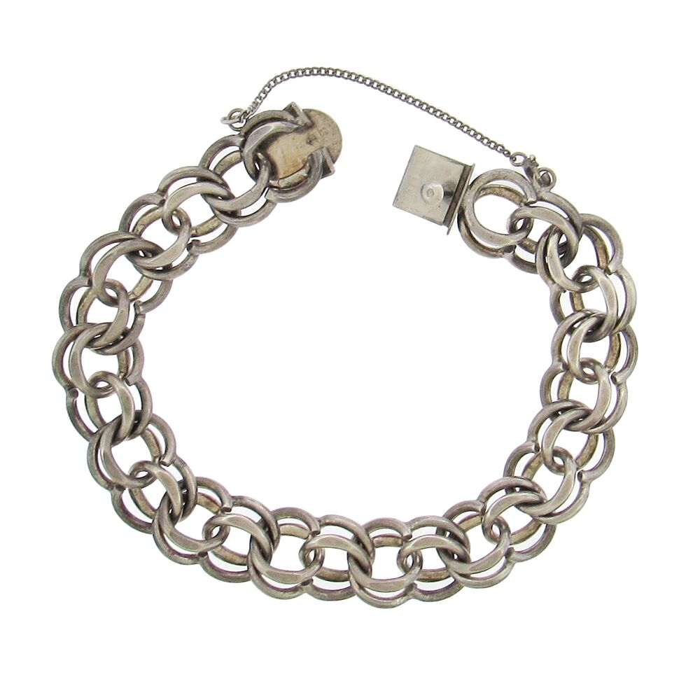 Sterling silver double cable link bracelet, 7.5″ long, with box clasp and safety.