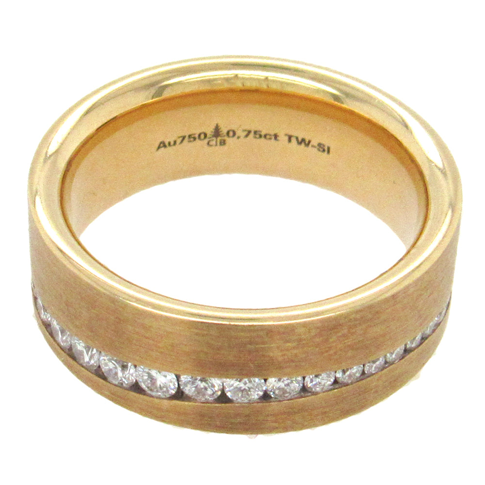 18K solid yellow gold 7mm gent's band from Christian Bauer is confort-fit,polished on the edges,with a matte finish and accented with an incised polished waved stripe circling the band.