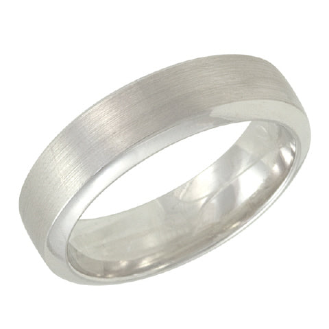 18K white gold gent's band with the styling and craftsmanhip of Christian Bauer: matte finish band,6.5mm, with polished beveled edges,heavy and solid but comfortable to wear.