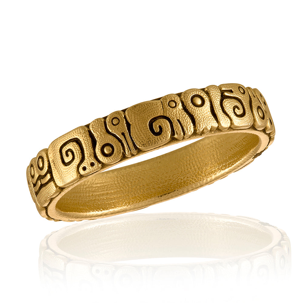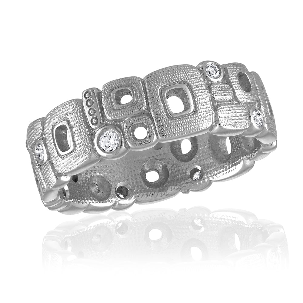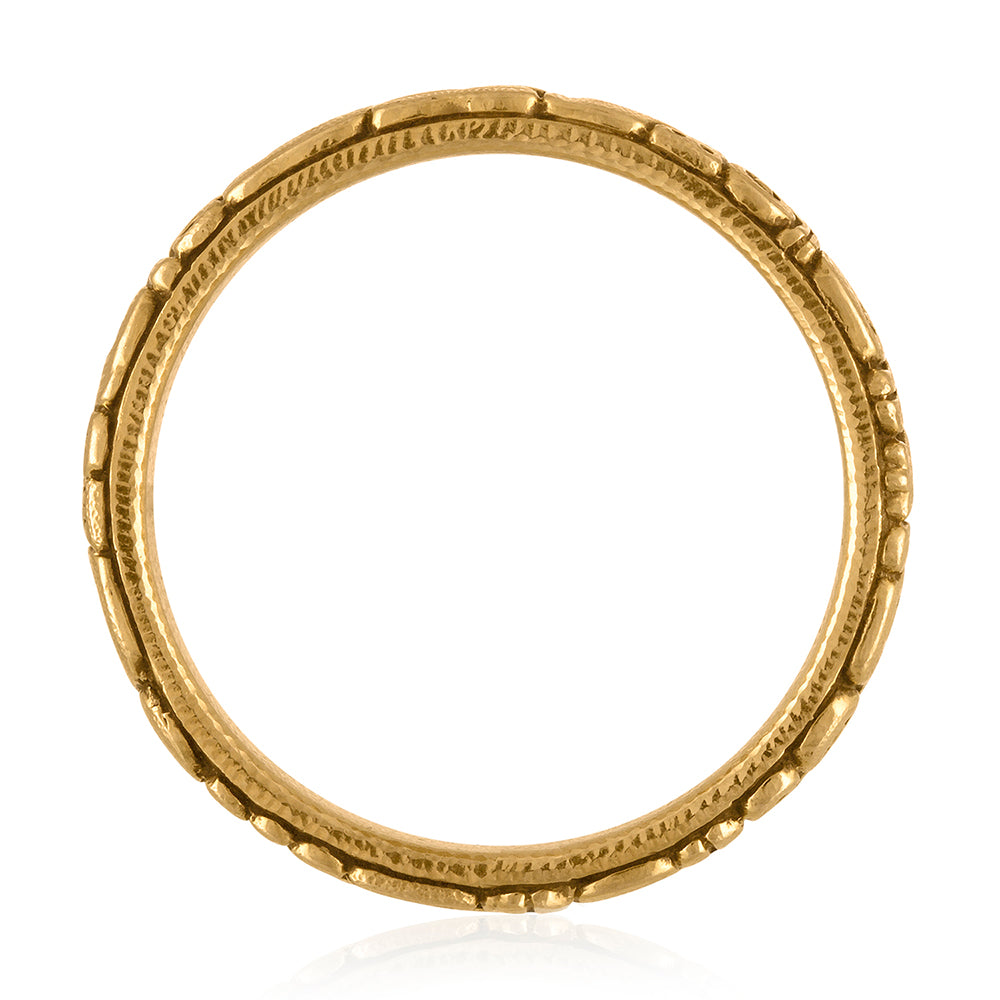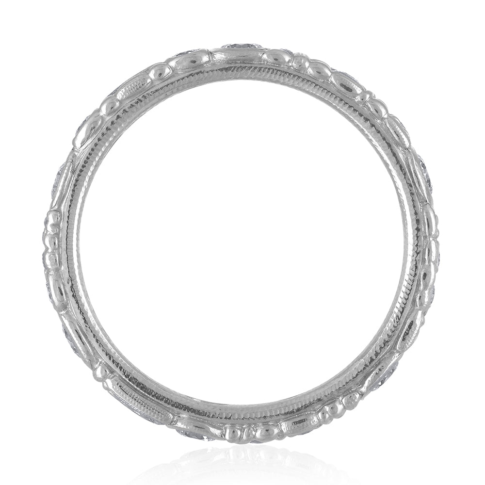 Alex Sepkus' carved and bead narrow platinum and diamond band is 3.5mm, set with 0.42 cts diamonds.