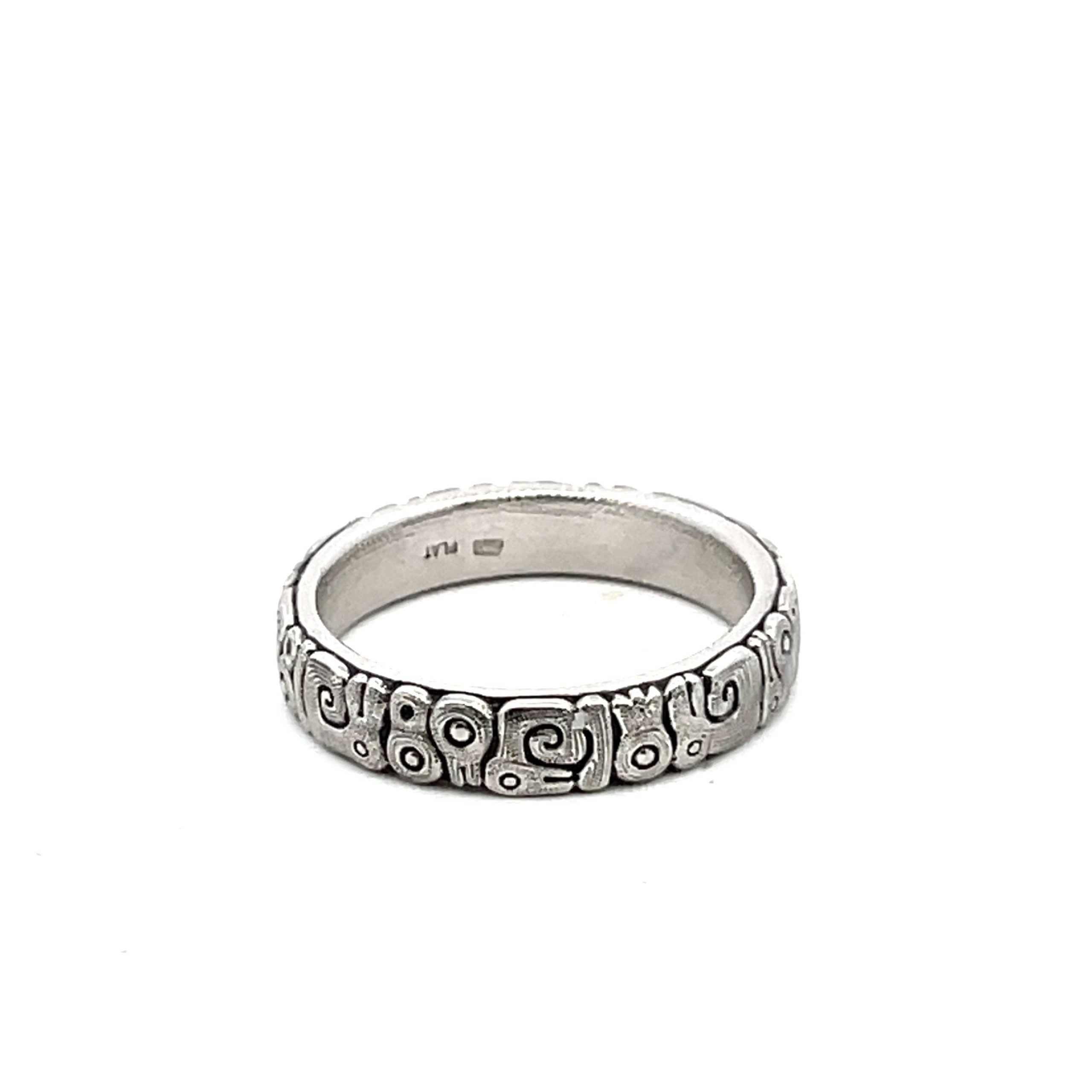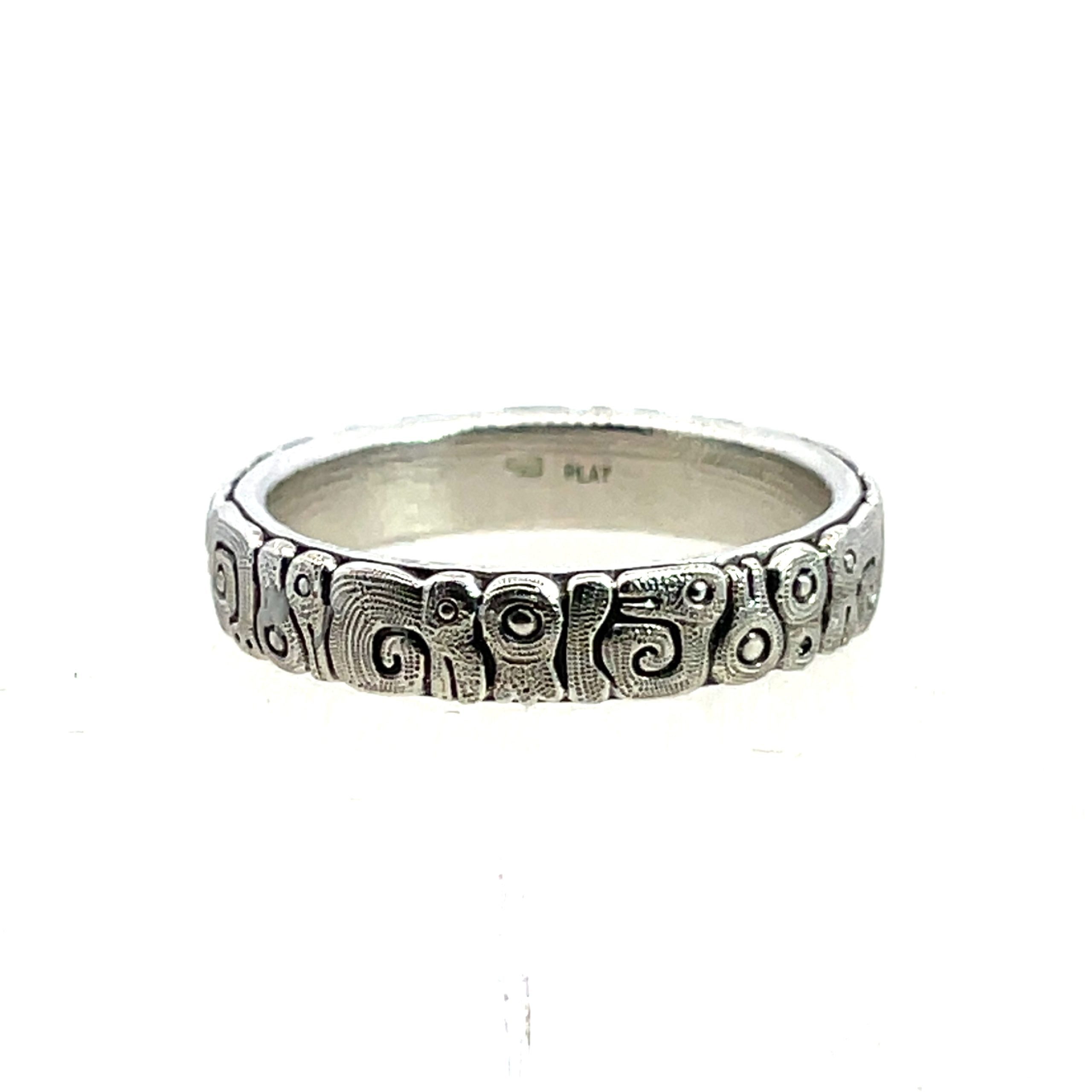 Alex Sepkus' delightful 'Sea Creatures' wedding band in platinum features the artist's obsessive attention to detail and craftsmanship in abstract segments that create visual interset from every angle. The 4.5mm ring is comfortable and available in sizes 9 to 12, this one size 9..