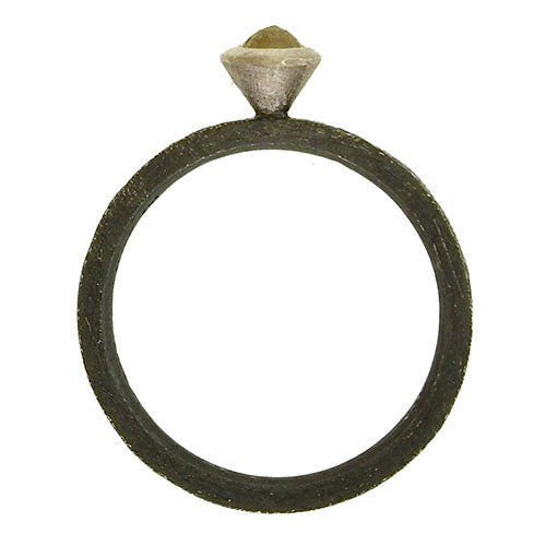 Alishan's natural rose-cut diamond stacking rings are great to wear stacked or solo,like this oxidized sterling silver square edge band with decorative scrolling and a 0.22 ct natural rose-cut diamond at center set in palladium and two colorless 0.15 ct tw diamond accents. The ring is 3/16" in diameter.