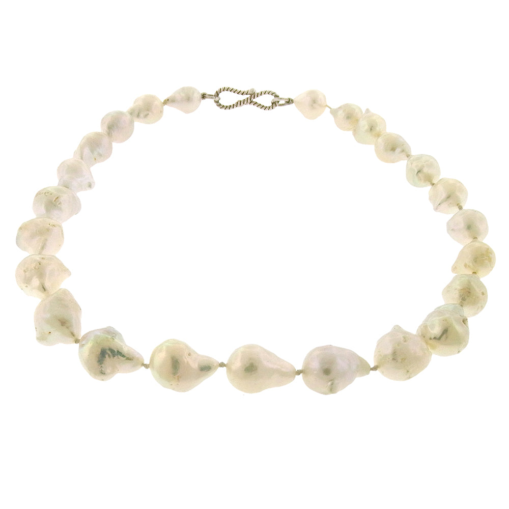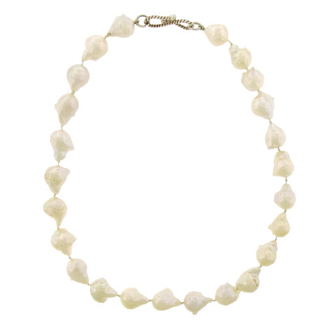 Wonderfully nuggety lustrous baroque pearls are fashioned into a 16" necklace with twisted sterling silver clasp.