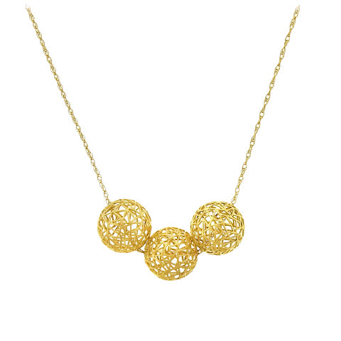 Baiyang Qiu's 18K open cage bead necklace sets three of her laser-strong open beads,9.5mm each,on an adjustable 18K gold chain,16" or 18".