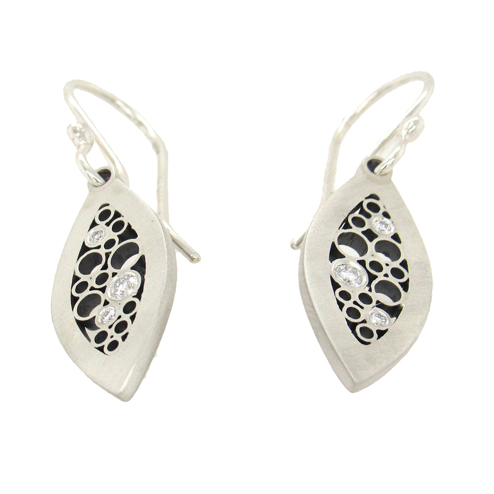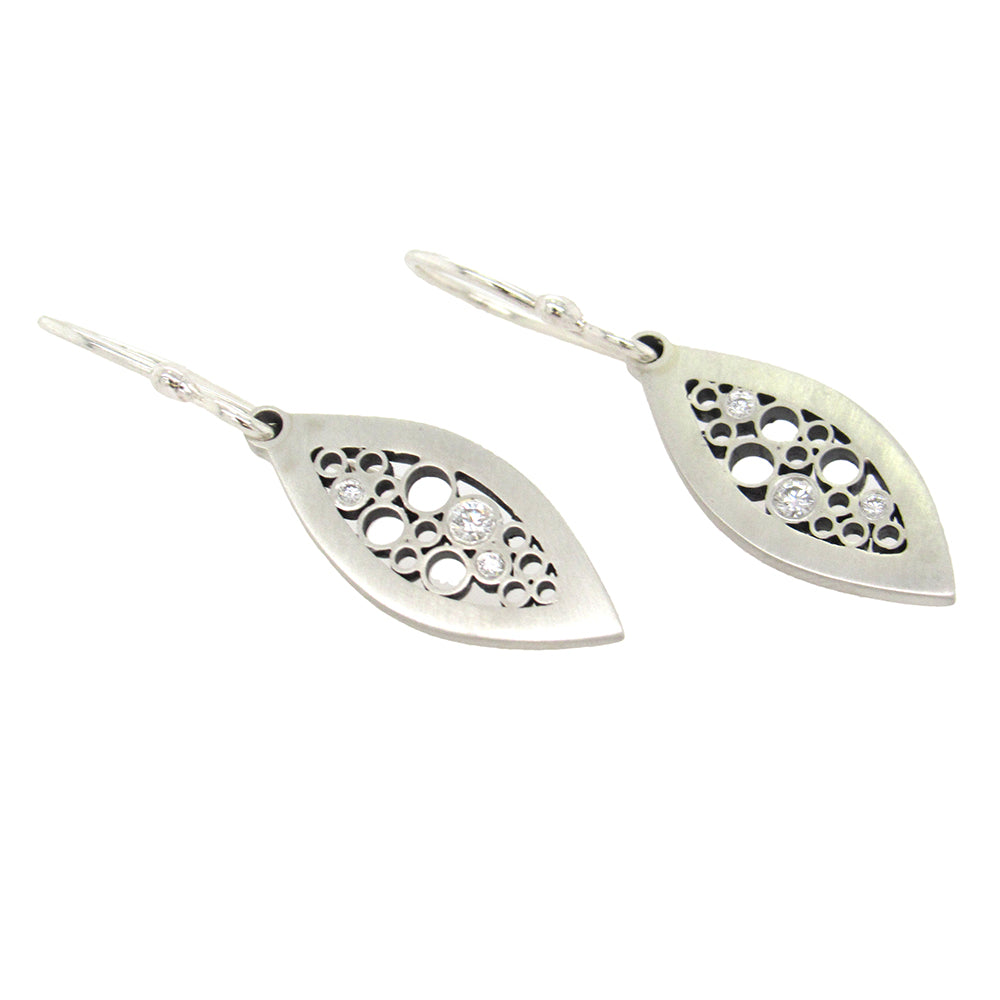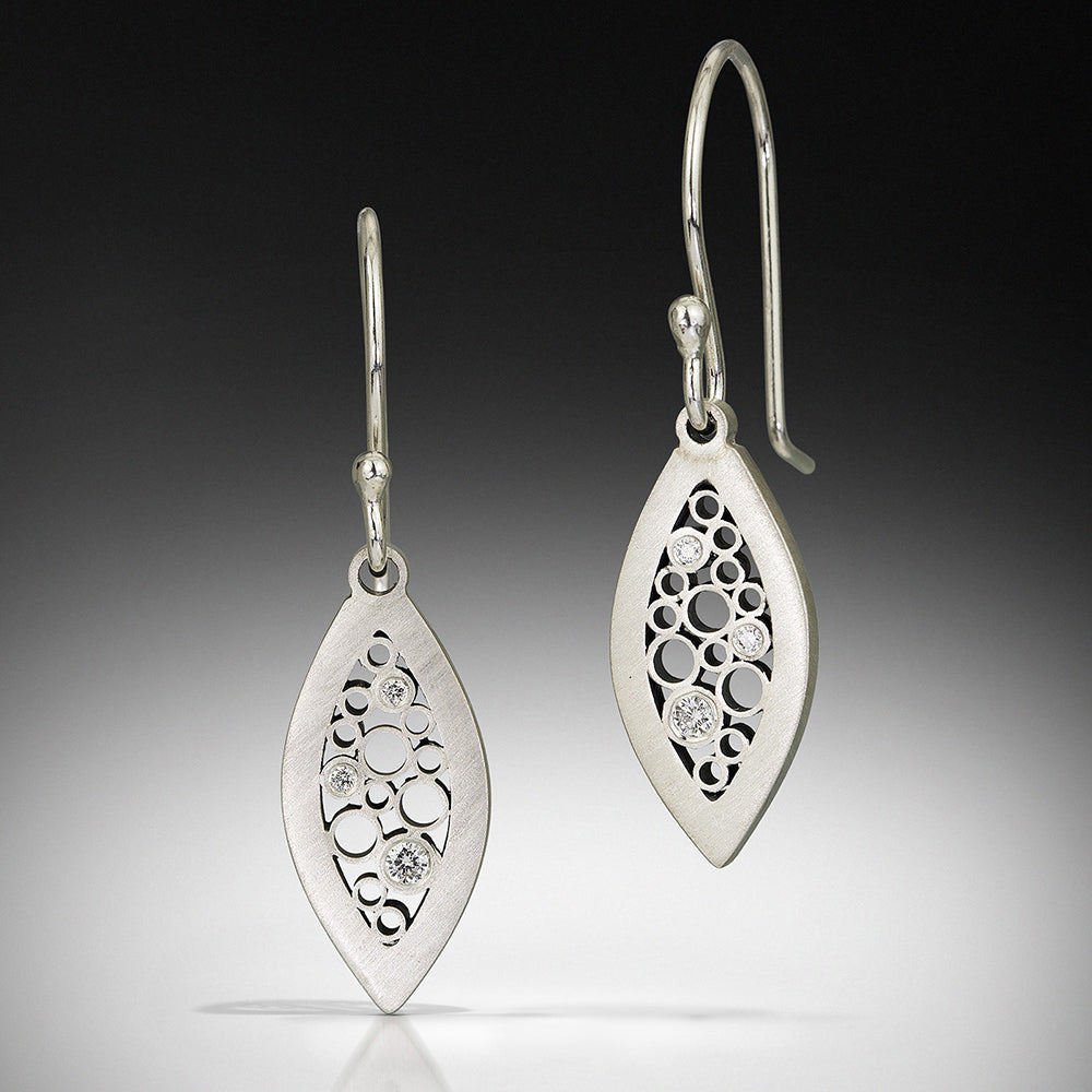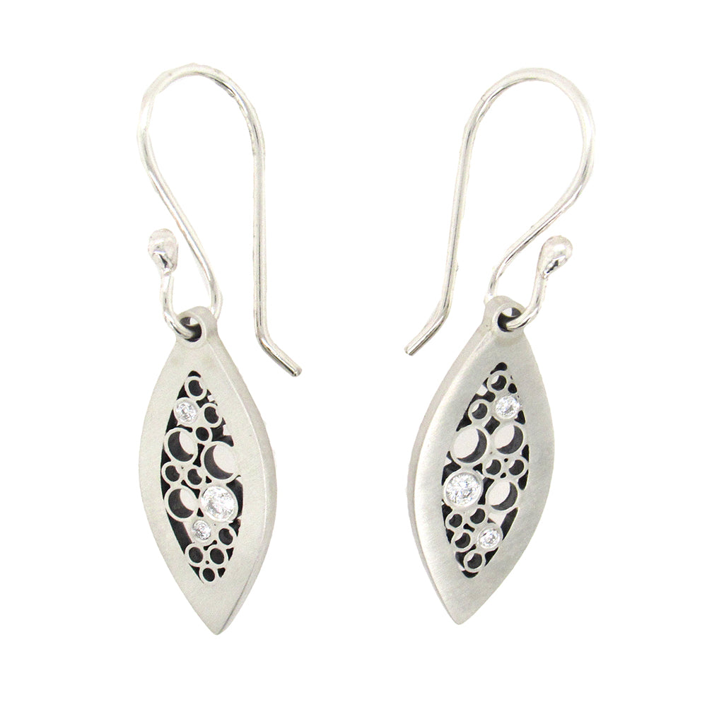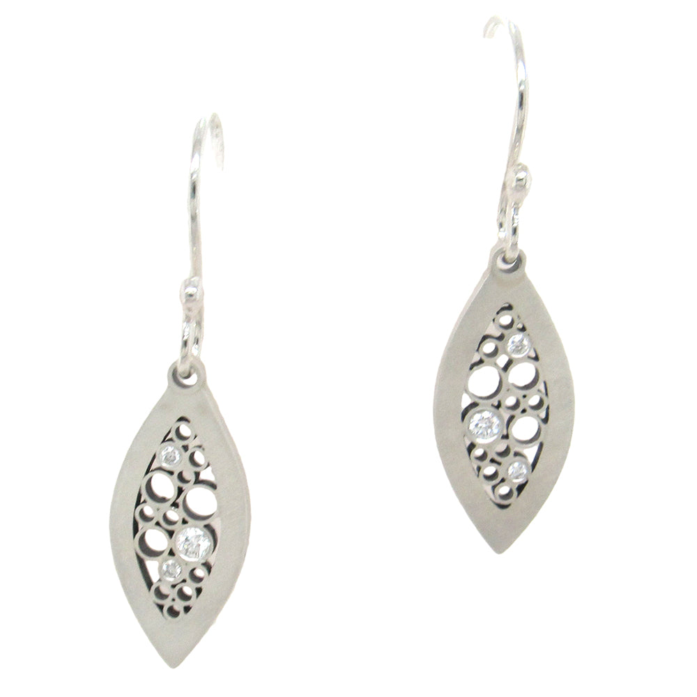Belle Brooke's intricate Luz petite leaf earring is a marquise drop set with 0.10 cts tw diamonds, G/VS quality, on a sterling wire. Earrings measure 3/8" x 1-1/2" long.