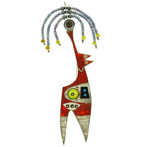 Tod Pardon (1952 - ) creates jewelry that reflects the myriad intellectual and visual influences for the artist of the twenty-first century. His anthropomorphic brooches and sculpture are strongly influenced by African sculpture, imagery and color; by contemporary pop culture, including video, music and computer graphics; by the influences of Modernism and Surrealism; and directly or indirectly by the artistic career of his father, Earl Pardon.