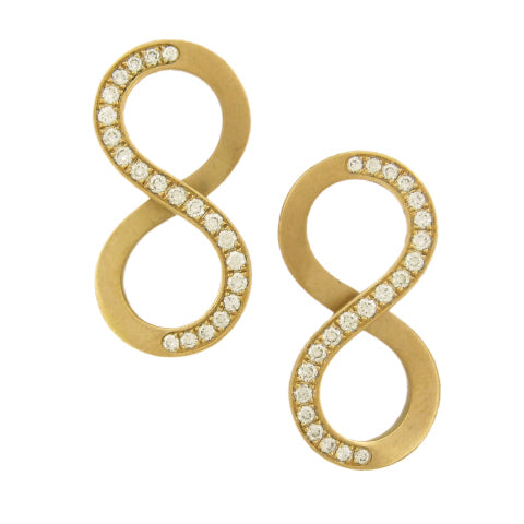 18K rose gold Eternity earrings loop around and over,set at top with 0.44 cts. diamonds tw,and angled towards the front so that the earring shows its full dimension when worn. Measures 1/2" wide x 1" long.