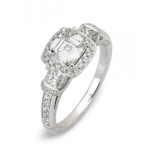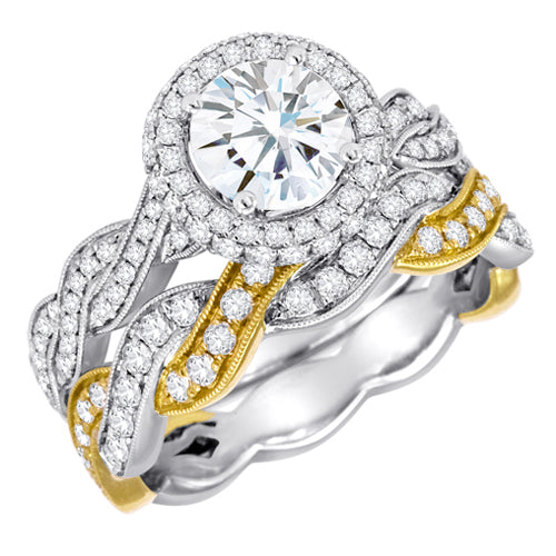 Simon G's diamond engagement ring mounting, a graceful nature-inspired design with its twining diamond ring rising to the center, surrounded with more diamonds. For a 1.00 carat diamond center, the mounting is micropavé-set with 0.52 cts diamonds.