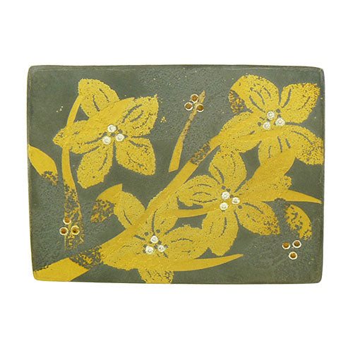 Atelier Zobel launches an entirely innovative contemporary jewelry collection,embossing pure gold,silver and platinum images on oxidized sterling silver. Here,a rectangular pin/ and pendant frames dogwood flowers on branches,the centers set with champagne and brown diamonds,0.21 cts tw. The pendant measures 1-3/4" x 2-3/8",on a 17" gilt leather cord with gold-plated sterling clasp. The pendant converts to wear with your or our bayonet-clasp pearls,sold separately.