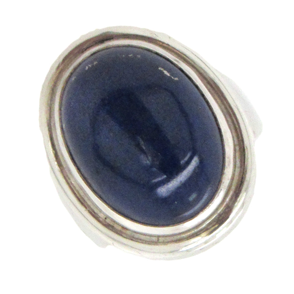 Sterling silver and lapis lazuli cabochon ring by Georg Jensen, designed by Harald Nielsen, from a private estate. The ring measures 3/4" x 7/8", is size 4.5, Jensen number 46A.
