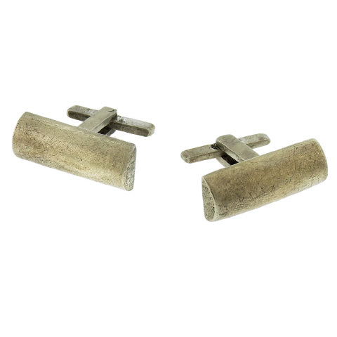 Sterling silver half-barrel cufflinks by designer Marcin Zaremski are made in Europe,carefully crosshatched texture and minimalist crossbar findings. Measure 7/8" x 3/8".