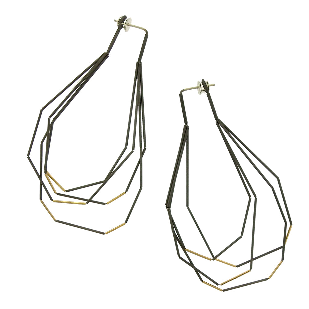 Great easy-to-wear design earrings from Maria Rzewuska design group, steel and 9K gold tubes on four layered strands create dimension in this light earring 1-1/2" x 3", with stainless steel posts.