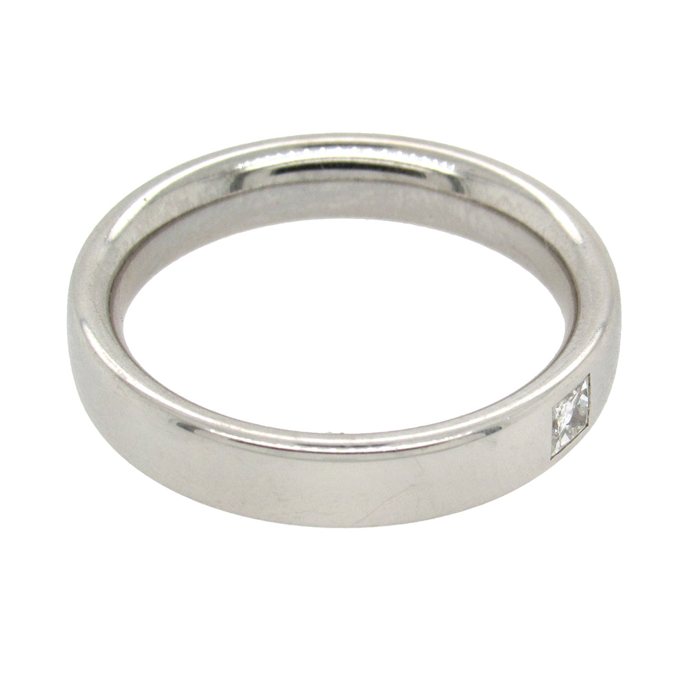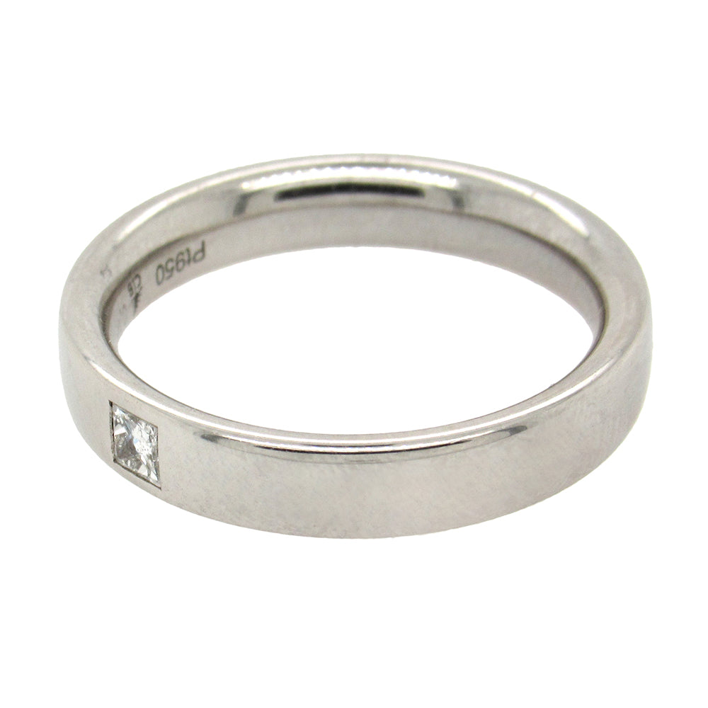 Platinum and diamond men's band from Christian Bauer, 4.5mm wide, comfort-fit ring from this premier German maker, set with a 0.17 ct princess-cut diamond. Size 10.