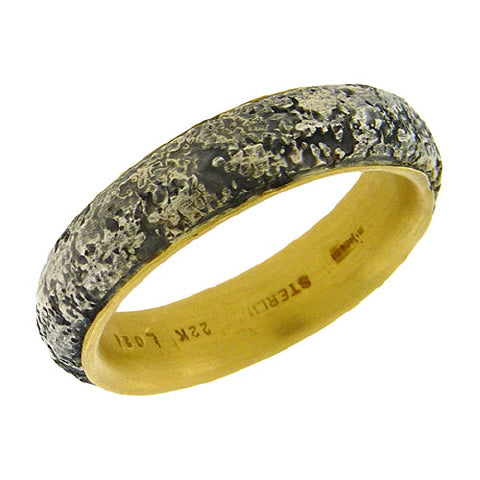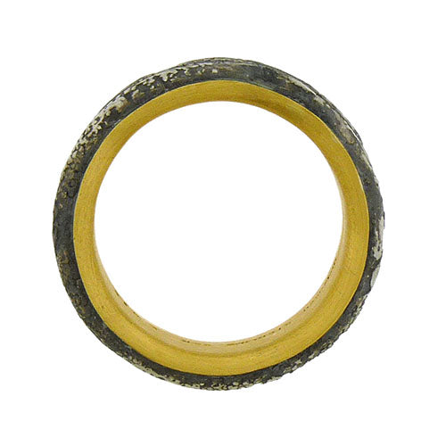 Michael Jensen Designs' 6mm band combines a textured oxidized sterling silver outside, lined inside with smooth 22K gold for comfort and luxury. Can be ordered in any width and size combination, shown here size 10.