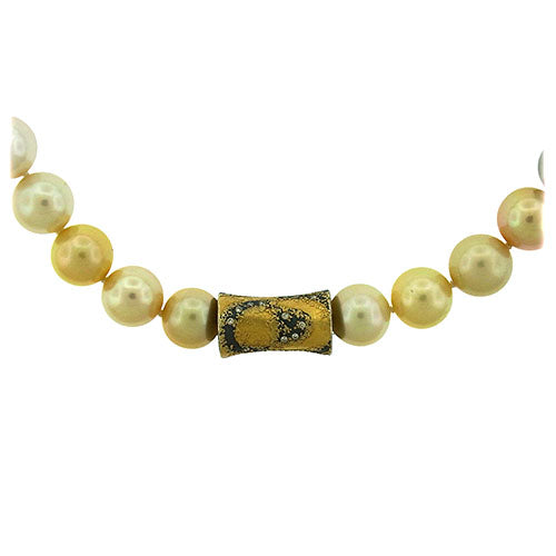 Sumptuous South Sea pearl necklace in harlequin colors of yellow, cream, white, gray, peacock and gold, measures 19" when worn with its all pearl invisible clasp, the pearls ranging in size from 13mm to 13.5mm, and longer still with separately sold vario clasp by Atelier Zobel.