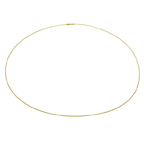 18K gold coil shown here with Niessing 'Topia'pendant,sold separately,is a 22" long,1.2mm coil from Niessing,the extraordinary Germany modern designer and manufacturer. The clasp pulls out on a spring for the narrow end to rest in,allowing the necklace to be used with most pendants.
