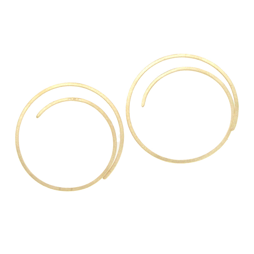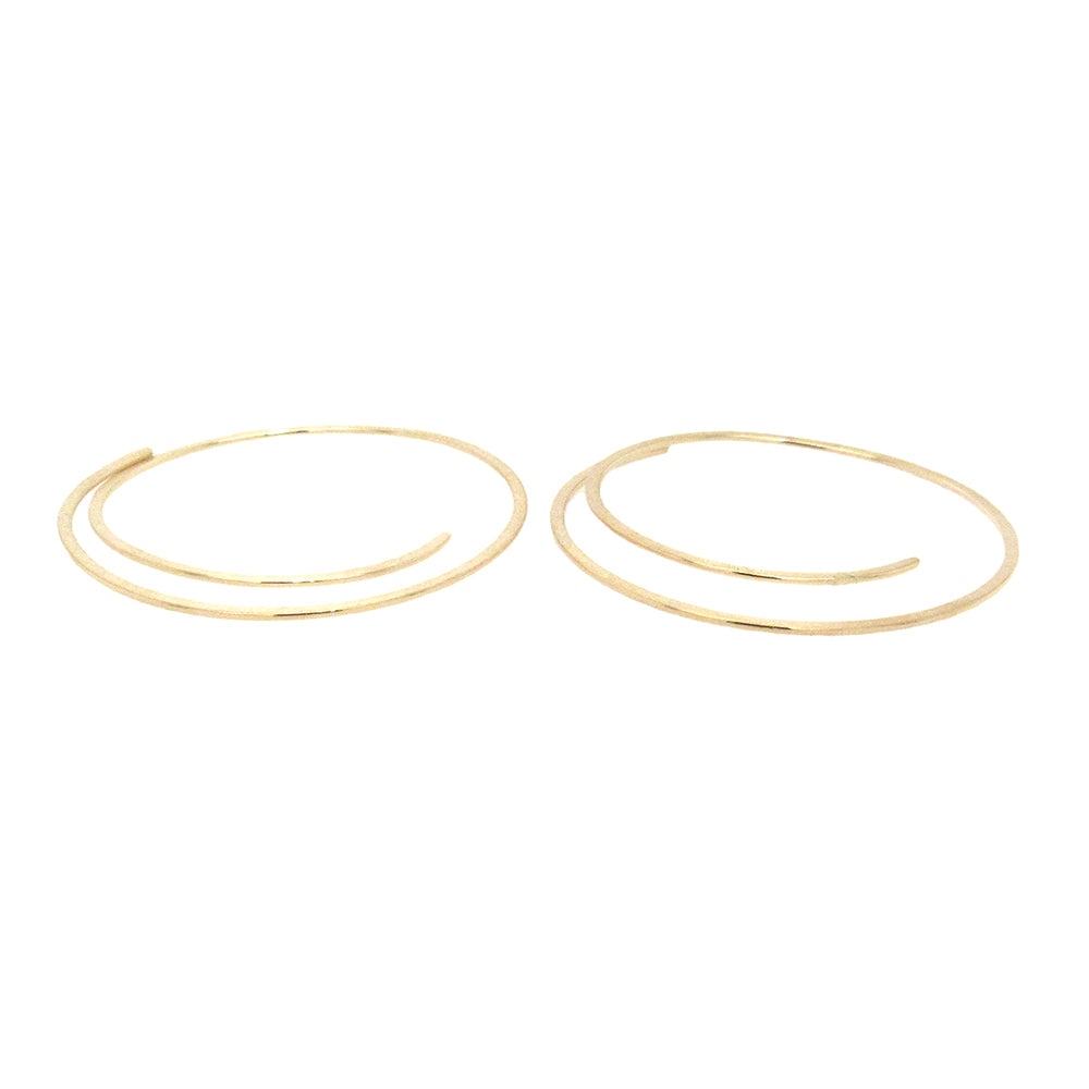 Niessing oh-so wearable round 18K gold 'Linear' hoops measure 1-1/4" diameter", easy to wear and self-secured