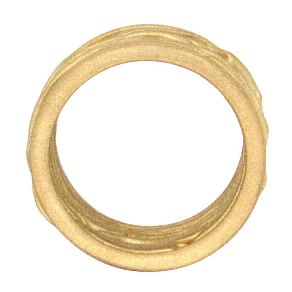How do you make a .900 (21K) gold ring that is strong enough to wear? Call Niessing! Here is their folded wide 11mm 'Plisse' ring, pleated in rows of .900 gold, in a manufacturing process developed to work-harden the pure gold so that it stands up easily to everyday wear. Measures 7/8" x 3/8", finger size 7.25. Or you can loop it on a chain or your favorite neck coil, or on to your pearls, or through a scarf, to create your own look.