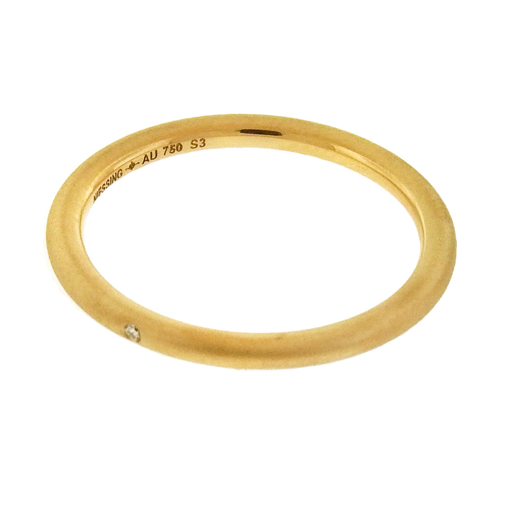 Niessing's gold alloys are unique and proprietary and their newest diamond stack rings 'Solaris' are richly alloyed in all 18K gold, ranging from rose gold to a deeply saturated golden yellow gold. Solaris4, shown here, is a soft golden shade, 1.7mm diameter, set with a .005 ct diamond. shown in size 7, prices may vary depending on size. Available individually or as a set.