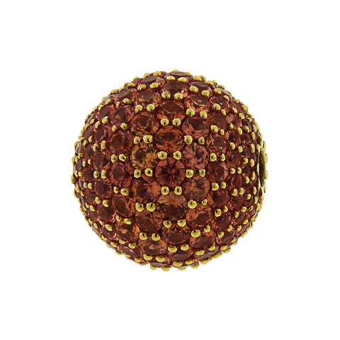 Peach sapphires glitter from every angle of this 14mm round pearl clasp,completely pave set with full-cut orange sapphires set in 18K yellow gold,perfect to wear with pearls or alone on a coil. Shown with pearl strand,sold separately.