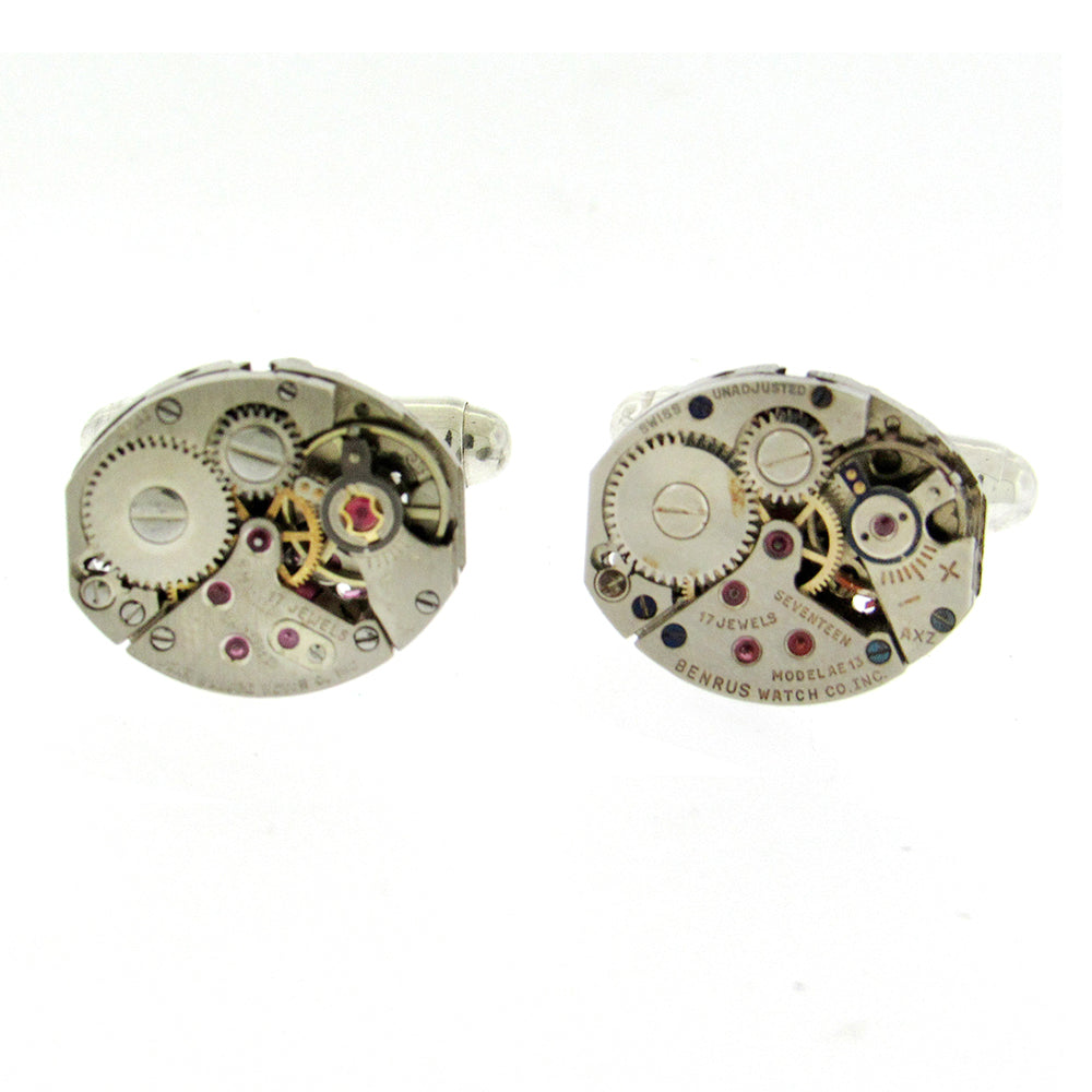For that watch aficionado, sterling silver cufflinks with actual watch movements -- these are 17J Swiss movements -- measuring 1/2" x 5/8".