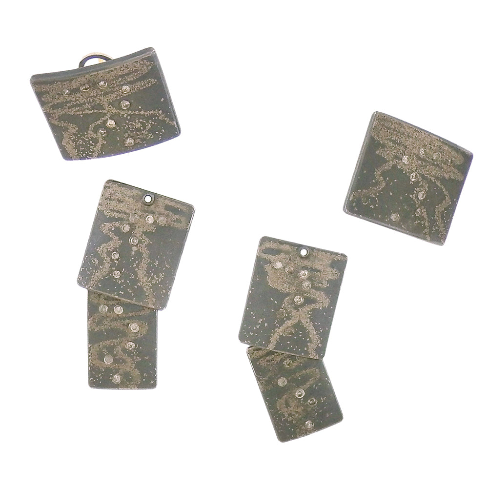 Peter Schmid of Atelier Zobel is known for the textured platinum-on-sterling finish seen here in his day-to-night drop earrings that detach for day wear. Earring top measures 1" x 3/4", earrings are 2-3/8" long for night., posts and omega clips.